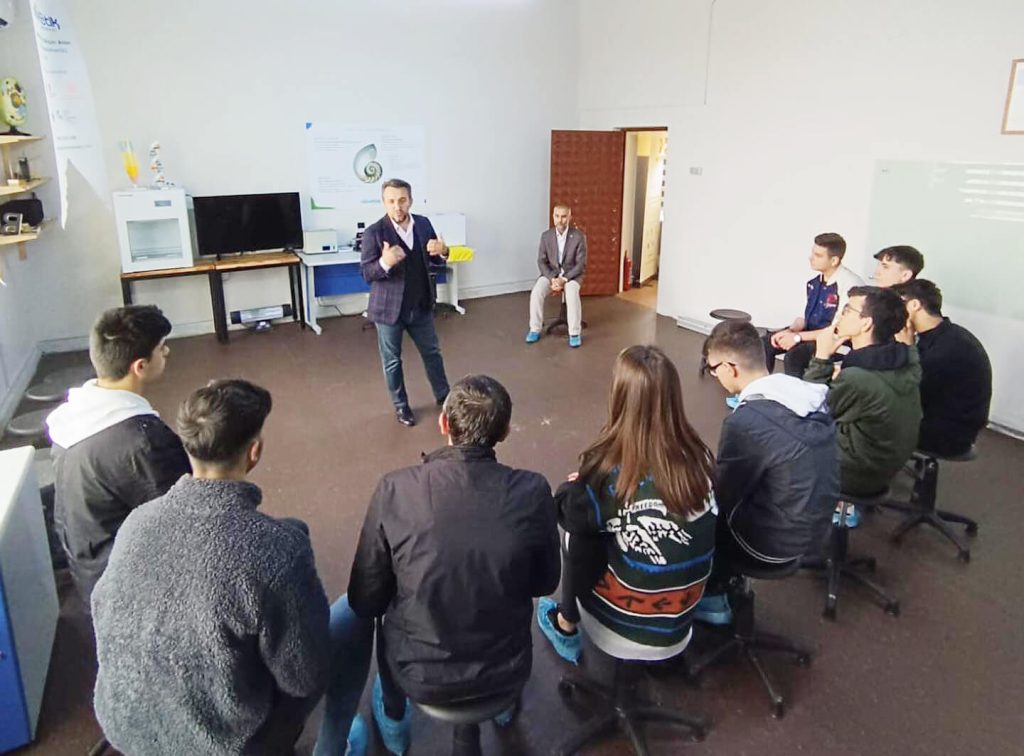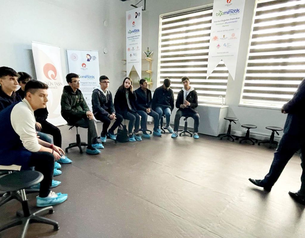 İstanbul Doğadan İlham Alan İnovasyon (Biyomimetik) Merkezi projemizde Nisan ayında okullarında seminer verdiğimiz Halil İbrahim Gürel AİHL Biyomimetik alanında ilerlemek isteyen özel bir öğrenci grubunu dün merkezimizde ağırladık. Proje Koordinatörümüz Dr. Ahmet Talat US ve Düşün Taşın Derneği Başkanı Selim ÇAVUŞ’un öğrencilerle yaptıkları atölyelerle yaklaşık 3 saat bilim, teknoloji, mimari, tasarım üzerine keyif dolu bir gün geçirdik.