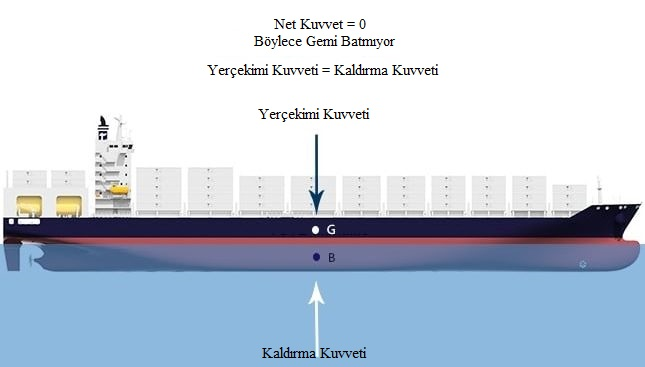 Kaldırma Kuvveti (F) = Geminin Batan Kısmın Hacmi (Yer değiştirdiği sıvının hacmi) x Yerini Değiştirdiği Sıvının Yoğunluğu x Ortamın yerçekimi ivmesi*