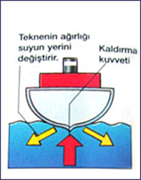Yani gemilerin yoğunluğu suyun yoğunluğundan daha az olduğu için suyun kaldırma kuvveti daha etkili hale gelir ve gemi yüzer, her ne kadar gemi küçük bir taş parçasına kıyasla metalden yapılmış ve yüksek bir ağırlığa sahip olsa da. Geminin toplam yoğunluğuna bakıldığında sudan az olduğu görülecektir.